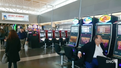 Figure 1. 베가스 공항의 첫 장면, 벌써 카지노 머신들이 즐비하다.