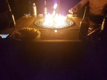 Figure 7. 뒷마당에서의 술자리, 불이 있어 몽환적인 분위기. 애어비앤비 집의 유일한 장점이었다.