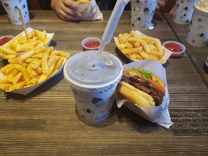 쉑쉑버거는 맛있었다. 치즈는 쫀득쫀득했고, 패티는 부드러웠다. 굉장히 단촐한 햄버거인데 맛있었다. Y에게 약간 느끼하긴 했지만 버거가 크기 않아 부담스럽지는 않았다. 쉑쉑 버거를 처음 먹어보는 J와 S도 대체로 맛에 만족했다.