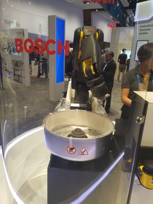 그렇게 JYMS 일행은 노스관가 센터관을 쭉 훓어 보기 시작했다. 삼성 부스도 구경을 했다. J는 작년에 왔었기에 올해도 LG가 이긴 거 같다는 이야기를 했다. 일행이 가장 많은 시간을 보낸 곳은 어처구니 없게도 보쉬의 로봇이 있는 코너였다. 가정용 로봇은 아니고 산업용 로봇이었다. 보쉬의 전략에 낚인 것일 수도 있었다. 처음 그들이 본 로봇은 솜사탕을 만들어 주고 있었다. 솜사탕이 나온다는게 신기해서 쳐다보다 로봇이 만든다는 것에 더 놀라웠다. 그러고 이동을 하려고 했으나 마지막 즈음에 주문을 받아서 커피를 타주는 로봇에 재차 낚였다. 거기서 가장 많은 시간을 보냈다. S는 직접 주문을 하기도 했다. 주문하는 곳에 이름을 적고 완료 버튼을 누르면 로봇이 컵을 가져와 서 프린터 앞에서 주문자가 쓴 이름을 프린트하고 커피 머신의 커피가 내려오는 곳에 놓았다. 그리고는 머신으로 커피가 내려오도록 한 다음 다 내려오면 그 컵을 옆에 있는 완료 지점에 위치 시켰다. 그러면 사람이 그 컵을 다시 구경꾼이 있는 테이블위이 올려주면 주문한 사람이 찾아가는 그런 구조였다. 그 산업용 로봇의 핵심 기능 중에 하나로 보쉬는 인간과의 자연스러운 협업이 가능하다는 것을 강조 했기에 사람을 억지로 끼워 넣은 것처럼 보였다. 실상 그 로봇은 사람 없이도 주문자가 있는 테이블에 컵을 가져다 놓을 수 있었기 때문이다. 대체로 그러하듯 JYMS 일행은 모두 일자리가 없어지는 우울한 미래를 상상했다. 우리는 무엇을 해야 할까? 우리의 아이들은 어떤 세상에 살게 될까, 라는 생각을 하면서 나머지 것들을 구경했다.