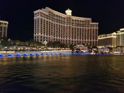 정각이 다 되갈 즈음 레이디스 앤 젠틀맨이라며 방송이 나왔다. J는 자연스레 이제 시작하는 것 같다는 이야기를 했고, Y도 그런 것 같다고 했다. 사실 방송 내용은 너무 작았고 잘 들리진 않았다. 하지만 정각이 지나도 분수는 없었다. 일행은 포풍 검색을 했고, S가 바람 불면 안 하는 것 같다는 얘기를 했다. 5분 정도 더 기다려도 분수가 나오지 않아 일행은 포기하고 베가스 메인 스트리트를 걷기 시작했다. 우리의 구글 역할을 한 T가 화장실을 가고 없었다. 나중에 T가 전화를 해서 확인을 했는데 바람이 불어 취소된 것이 맞다고 했다.