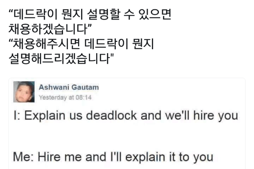 C++ 프로그래머 채용합니다. 학력, 경력, 출신, 나이, 종교, 성별, 정치성향, 외모, 성격 따지지 않습니다. C++ 코드를 읽을 수 있는지, 또 C++ 코드를 쓸 수 있는지만 봅니다. 파이썬을 할 줄 알면 더 좋구요. 몰라고 크게 상관은 하지 않습니다. 데드락 유머들 이해할 수 있다면 충분하다는 생각입니다. 윈도우/리눅스/BSD/macOS 중 하나 이상 시스템 프로그래밍 경험이 있다면 금상첨화지요.