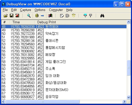 위의 화면에서 452번 PID를 가진 프로세서는 네이트온이다. 버젓이 릴리즈된 제품의 디버깅 내용을 제거하지 않는 이유는 무엇일까???~
