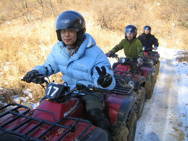 ATV 타기~ @codemaru · February 22, 2006 · 1 min read 2006y 몇일전에 회사에서 제품 출시 기념으로 개발실 워크샵을 갔었습니다. 거창하게 간건 아니고 일박이일로 속닥하게 다녀왔죠~ ㅎㅎ^^ 회사를 마치고 출발하는 일정이라 첫 날은 밥먹고 이야기 하고 놀다 보냈고~ 이틀째 되던날 ATV를 타고 왔습니다. ㅎㅎㅎ~ 보기보다 재밌더군요... 보기엔 저렇게 허덥해 보여도 저놈이 아주 가파른 산길도 마구마구 달리더라구요~ ㅎㅎ 완전 카트라이더 하는 기분이 나더군요... 쿄쿄쿄~~@.@ 하여튼 재밌었습니다.Previous Post기가 바이트 시대...Next Post노트북 고장...@codemaru돌아보니 좋은 날도 있었고, 나쁜 날도 있었다. 그런 나의 모든 소소한 일상과 배움을 기록한다. 여기에 기록된 모든 내용은 한 개인의 관점이고 의견이다. 내가 속한 조직과는 1도 상관이 없다.