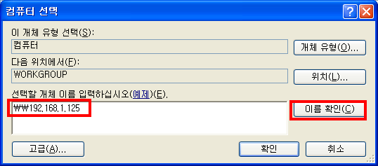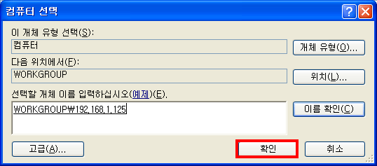 개체가 찾아지면 아래 그림과 같이 이름이 변경됩니다. 그 상태에서 확인 버튼을 누릅니다.