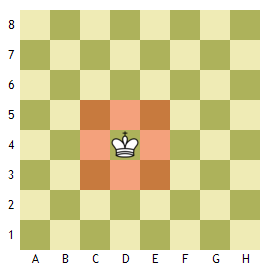 마이너 피스라 불리는 비숍과 나이트 입니다. 비숍은 대각선으로만 이동할 수 있습니다. 따라서 검은 칸에서 시작한 비숍은 끝날때까지 검은 칸에만 있고, 흰칸에서 시작한 비숍은 흰칸만 돌아다닙니다. 오른쪽 그림은 니이트입니다. 니이트는 붉은 색으로 표시된 8곳으로 이동할 수 있습니다. 영문자 L을 생각하면 쉽게 기억할 수 있습니다.