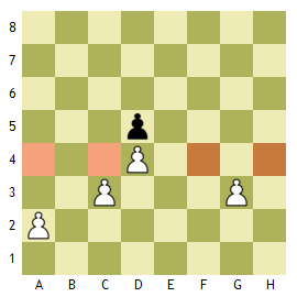 가장 약한 유닛이면서 가장 어려운 폰입니다. 폰의 경우 기본적으로 한 칸 앞으로 전진합니다. 특이하게, 한번도 움직이지 않은 폰은 두 칸을 한번에 움직일 수 있습니다. 또한 가장 특이한 특징은 다른 유닛과 다르게 공격은 대각선 방향으로 한다는 점이죠. 따라서 앞을 가로막히면 전진이 불가능합니다. 두번째 그림은 폰과 관련된 특별 규칙인 앙파상 입니다. 앙파상은 상대가 두칸을 움직이는 경우에 해당 폰을 잡을 수 있는 것입니다. 두번째 그림을 보면 흰색 폰이 두칸을 움직입니다. 폰은 대각선 앞만 공격하기에 그 폰을 잡을수 없지만, 앙파상이라는 특별 규칙 때문에 잡을 수 있습니다. 잡고나면 세번째 장면의 위치로 흑색 폰이 이동합니다.