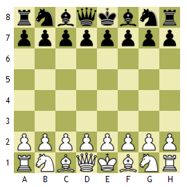왼쪽 그림은 기본적인 체스 기물의 위치를 보여줍니다. 오른쪽은 기초적인 오프닝을 보여줍니다. 킹 폰이 전진하고, 킹사이드 나이트가 나가고, 비숍이 나가고, 캐슬링을 준비하는 것이죠.