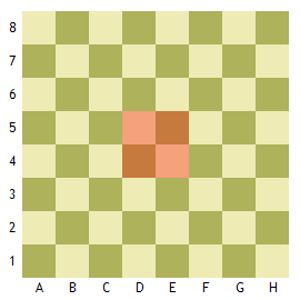체스에서 초반 싸움이 치열한 중앙 네곳을 중앙(center)라 부릅니다. 그림에 표시된 d4, d5, e4, e5가 중앙입니다.