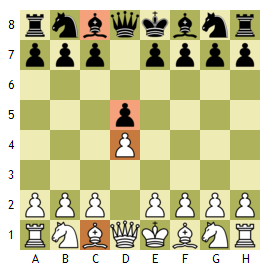 클로즈 게임이란 오른쪽 그림과 같이 시작하는 게임입니다. 킹폰이 아닌 퀸폰을 전진시키는 것 입니다. 오픈 게임에 비해서 장점이 무엇이라고 생각 됩니까? 오픈 게임의 경우 킹 폰 전진 이후에 그것을 보호해줄 기물이 없습니다. 독립된 것이죠. 하지만 퀸 폰의 경우 폰이 전진하더라도 뒤에 퀸이 지키고 있기 때문에 시작과 동시에 보호를 할 수 있습니다. 또한 퀸사이드 비숍의 길이 열리는 장점도 가집니다.