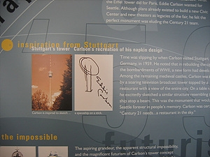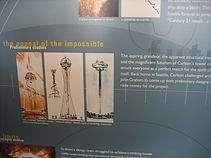한국에 남산타워, 도쿄의 도쿄 타워, 파리에 에펠탑과 같은 것이 당연히 씨애틀에도 있습니다. 스페이스 니들이죠. 총 길이가 609인치라는데 다른 타워와의 비교 내용을 보니 그닥 높은 것은 아니더군요. 그런데 공사는 무지하게 힘들었다고 적어놨던데 왜 힘들었다는 건지. 위의 사진처럼 생겼습니다. 엘레베이터를 타고 올라가고 올라가는데 15불이더군요. 흠흠.