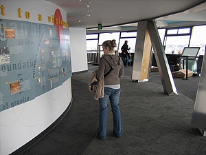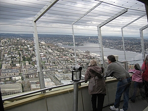 굉장히 열심히 보는 학생과 관광하는 씨애틀 사람들(?) 입니다. 올라가서 타워 밖으로 나갈수 있다는게 재밌습니다. 보통 안전과 보안상 밖으로 못 나가는데 여기는 개방해 두었더군요. 더 웃긴건 밖에서 뛰어내릴 수도 있게 되어 있습니다. 조금 섬뜩하더군요. ㅋㅋ 밑을 내려다보니 현기증이 잠시.