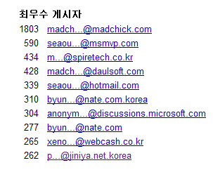 구글 그룹에 들어가면 각 그룹에서 게시자 별로 몇 건을 올렸는지 통계를 내 준다.