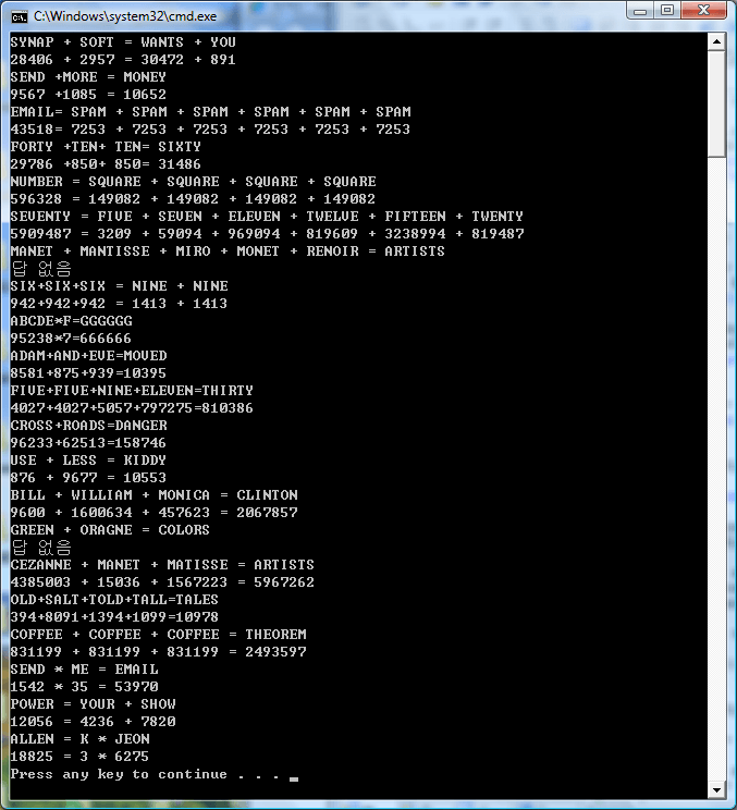 위에 vista에서 캡쳐한 화면을 보면 답없음이 나온 두 줄이 아래와 같습니다.