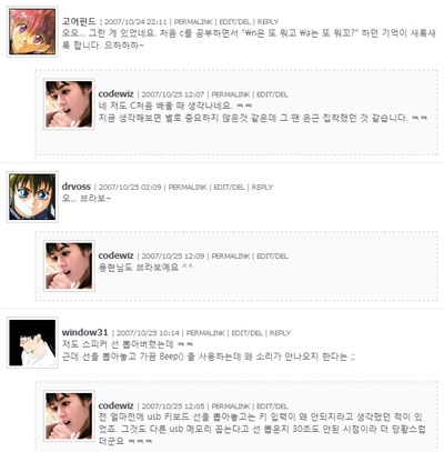 바꾸고 싶거나 자신의 아바타를 등록하고 싶으신 분들은 codewiz 골뱅이 gmail.com으로 메일 주세요. *^^*
