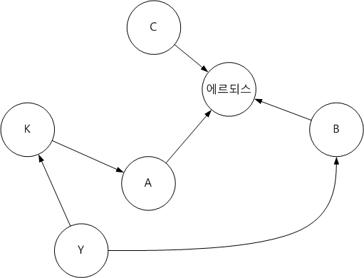 세상 사람들이 여섯 명만 거치면 모두 아는 사람이라는 이론이 있습니다. 대부분들 좁은 세상이라는 말에는 수긍하면서도 정말 여섯 명만 거치면 지구상에 있는 어떤 사람과도 연결될 수 있을까라는 의문을 가지게됩니다. <링크>라는 책을 보면 이것과 관련된 한 가지 재미있는 연구가 나옵니다. 바로 에르되스 넘버입니다. 에르되스는 유명한 수학자입니다. 에르되스 넘버란 에르되스를 기준으로한 네트워크 경로 상의 경로의 길이를 말합니다. 에르되스와 같이 논문을 쓴 수학자는 1의 에르되스 넘버를, 에르되스와 같이 논문을 쓴 사람과 같이 논문을 쓴 사람에게 2란 에르되스 넘버를 부여하는 형태입니다. 아래 그림에서 A, B, C는 1을, K, Y는 2란 값을 가지게 됩니다. 즉, 이 에르되스 넘버가 작을수록 에르되스와 네트워크 상의 거리가 가깝다고 할 수 있습니다. 그런데 신기한 사실은 대부분의 수학자가 에르되스 넘버 2에서 5사이의 값을 가지고 있다는 겁니다. 앞서 말했던 좁은 세상 이론과 비슷한 결과를 나타내는 셈이죠.