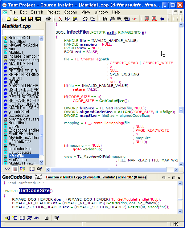 요즈음 간단한 드라이버를 만들 일이 있어서 소스 인사이트를 설치했습니다. 뭐 드라이버를 꼭 소스 인사이트로 개발해야 되는 것은 아니지만 제가 처음 드라이버란 것을 알게된 회사에서 대부분의 드라이버 개발자 분들이 소스 인사이트를 사용했기에 은연중에 소스 인사이트로 개발하면 편리하다는 생각을 하게 되었습니다. 그 많은 개발자들이 쓰는데는 이유가 있다고 생각했거든요. ㅋ 그러고 보면 참 첫 경험은 정말 중요합니다. 누군가 노트패드로 드라이버 개발하는 것을 봤으면 저 또한 그렇게 할지도 모르는 일이니까요. ㅋ