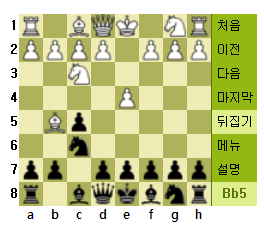 Bb5는 비숍을 b5로 이동시킨다는 것을 의미하죠.
