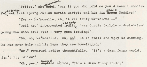 아래 그림은 피츠제럴드가 처음 쓴 《해변의 해적》의 엔딩 부분이다. 처음에는 아디터의 꿈으로 결말을 지었다가, 극적 재미를 위해 지금처럼 결말 부분을 고쳐 썼다고 한다. 이런걸 보면 '창조란 참 고달픈 작업인것 같다'는 느낌이 든다.