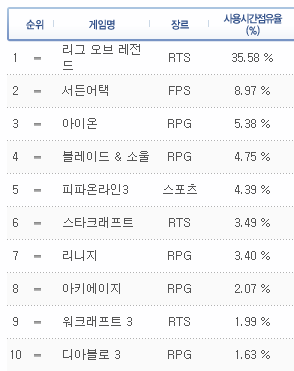 1위부터 10위 까지가 전체의 70%를 차지하는 세상.
