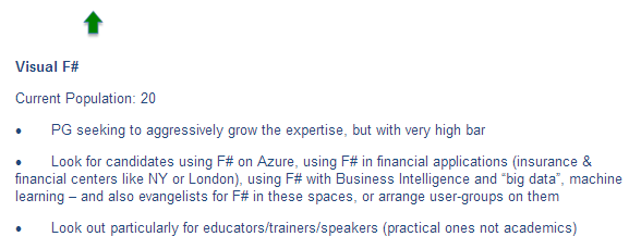 이런 시대적 흐름에 발맞춰 MS에서는 F#이라는 .NET용 함수형 언어를 개발했습니다. MS가 개발한 언어답게 Real-World에서 바로 사용할 수 있을 정도로 실용성이 강조됐습니다. 기존 .NET 프레임워크를 잘 활용할 수 있도록 구성돼 있죠. 특히나 제가 느낀 인상은 MS가 상당히 공을 들이고 있다는 점입니다. F# 배우기 페이자만 보더라도 정말 토나오죠. MVP 리드도 F# MVP를 간절하게 찾고 있는 모양이예요. 이러니 저리니 해도 일자리를 구한다는 의미라면 사실 F#이란 언어가 크게 시장성이 있지는 않을 겁니다. 그래도 배워두면 여러분의 강력한 무기 중에 하나가 될 거라는 점은 장담할 수 있을 것 같아요.
