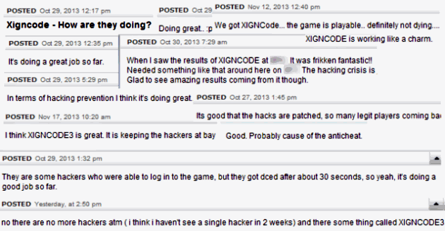 어쨌든 그때부터 개발팀은 무한분석, 불꽃코딩, 밤샘, 지원팀은 매일같은 업데이트를 하게 되었다. 물론 업체 측에서도 해킹툴 척결의 의지가 있었기에 업데이트를 상당히 우호적으로 적용해 주었고 일정 수준 이상의 성과를 보이고 있다. 오늘이 꼭 10일째 되는 날인데, 우리는 그 사이에 무려 7번의 업데이트를 했다. 사실 주말 빼고는 매일 업데이트를 했다고 할 수 있다.