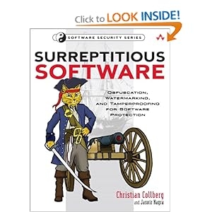 실무를 주로 하다보면 이론적인 부분이 취약해지기 마련이다. 앞서 우리가 생각한 방법들도 사실 경험적인 추론에 의한 것들이지 수학적으로 코드 조작에 대응할 수 있는 방법들은 아니다. 잘 알겠지만 가장 효과적인 방법은 모든 코드를 알고, 그 원리를 알더라도 공격하기가 힘든 수학적인 근간이 있는 방법들이다. 이런 점에서 이번 싸움을 하면서 난 anti tampering이라든가 tamper proofing 같은 기법들에 관심이 생기기 시작했다. 그 과정중에 2009년에 발간된 기념비적인 책을 하나 찾게 되었는데 바로 Surreptitious Software란 책이다. 조작 방지에 관한 내용만 전문적으로 다루고 있는 책인데 실무적인 지식 보다는 이론적인 부분에 포커스가 있다. 사실 뭐 반반 짬뽕이라고 보면 된다. 나같은 사람이 보기에 편하게 쓰여진 책인 것 같다.