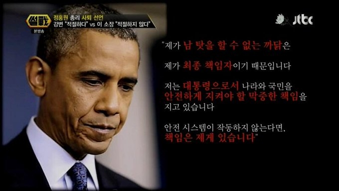 “제가 남 탓을 할 수 없는 까닭은 제가 최종 책임자이기 때문입니다. 책임은 제게 있습니다.” – 버락 오바마