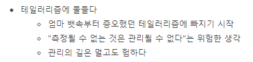 물론 난 지금도 테일러리즘을 싫어한다. 그리고 인간이 인간을 관리한다는 생각 자체도 너무 우습다고 생각한다. 똑같은 인간끼리 뭘 관리한다는 말인가? 하지만 기존의 생각과는 다른 몇 가지 생각은 확실하게 변했는데, 그 중 하나가 일등은 일등대로의 방식이 있고, 꼴찌는 꼴찌의 방식이 있다는 생각이다. 많은 교과서에서 말하는 좋은 기업의 조건이나 관리 방식은 사실상 내가 생각했을 때에는 일등의 방식이다. 최고의 인재를 모아서 물쓰듯 자본을 쓸 수 있는 환경에서나 가능한 일들이란 이야기다. 동일한 사항을 그렇지 않은 환경에 적용한다면 당연히 여러가지 문제점이 발생할 수 밖에 없다.