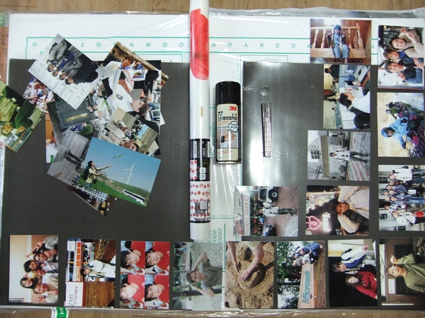 준비물은 이렇습니다. 소스 사진, ND 자석, 폼보드 하나, 철지 2장, 시트지, 3M 접착 스프레이, 자, 커터칼. 이게 끝입니다. 사진은 컴퓨터에 있는 것 중에 몇 장을 추렸습니다. 컴퓨터에 썩고 있던 것들을 인화해서 보니 느낌이 새롭더군요. 폼보드, 3M 접착 스프레이, 자, 커터칼은 회사 밑의 문구점에 쉽게 구했습니다.